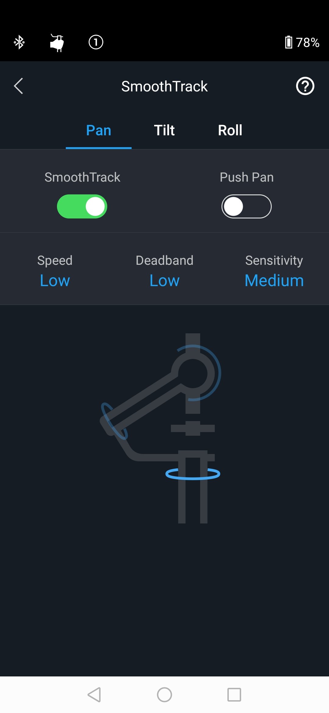 Precisamente es a través de la app donde se puede configurar el Ronin-S para hacer lo que se llama un «giro infinito». Esto consiste en liberar el eje horizontal para que el cabezal pueda girar 360 grados y así poder realizar movimientos de cámara en espiral muy peculiares. Es una posibilidad que no suele verse en estabilizadores de esta gama.