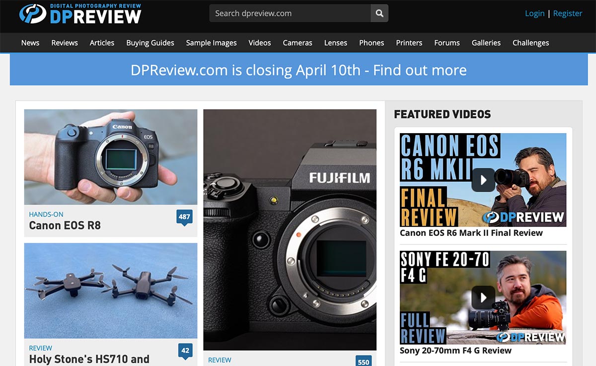 After nearly 25 years of operation, DPReview will be closing in the near future. Please click here for more information: https://t.co/JPK4Nd8xuk pic.twitter.com/6J1ymErU7F
