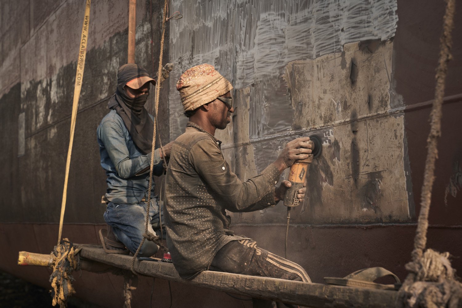 En este último viaje tuve la oportunidad de visitar los astilleros de Dhaka, un lugar en el que la seguridad laboral brilla por su ausencia. Allí miles de personas trabajan de sol a sol en la reparación y en la construcción de todo tipo de embarcaciones. Desde pequeñas barcas de madera hasta enormes buques de carga. Esta serie fotográfica pretende dar algo de visibilidad a las duras condiciones laborales que allí se viven.