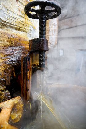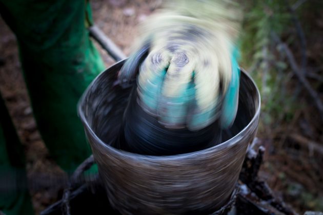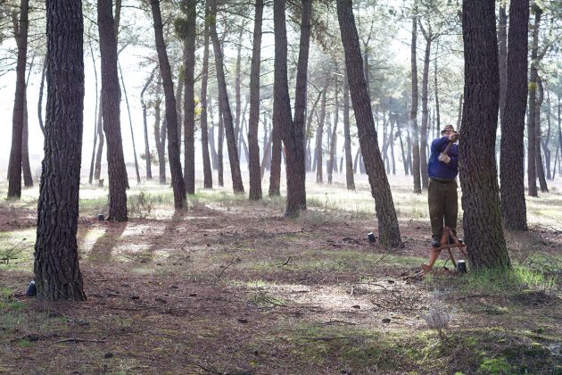 Para realizar este trabajo Diego Gómez ha utilizado una Canon EOS 7D acompañada de dos ópticas fijas de 35 y 50 milímetros para las fotografías exteriores, y de un zoom de 17-55 milímetros para las tomas en la fábrica y el taller de herramientas. «He trabajado en color para que se pueda apreciar el cambio de las estaciones y de las tonalidades del pinar durante el periodo de trabajo», explica.