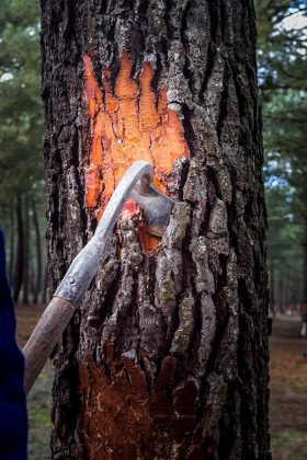 La extracción de resina del pino negral (pinus pinaster) para su uso en la industria química se ha convertido en una actividad económica estrechamente ligada a la comarca de la Tierra de Pinares, en Segovia. Una profesión estacional y profundamente rural cuyos métodos de trabajo han cambiado bien poco durante los últimos decenios.